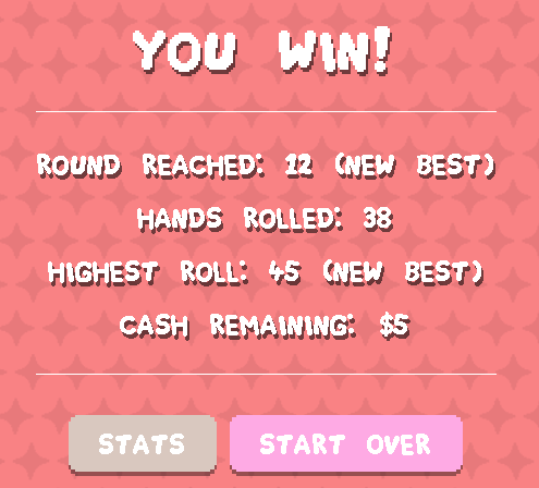 I didn't realize you could increase the number of dice at first because of the itch overlay... My first win was with five d20s, lol